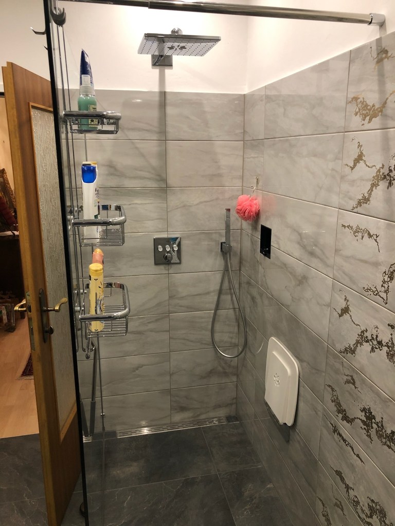 Dusche Badezimmer Badezimmer (vorher)Badezimmer (nachher)StiegenKüchenbodenStiegenStiegenBadezimmerDuschbereich aus Fliesen 250 cm x 150 cmStiegenBadezimmerboden in HolzoptikDusche – AblageBadezimmerDusche – eingearbeitete RinneBadezimmer